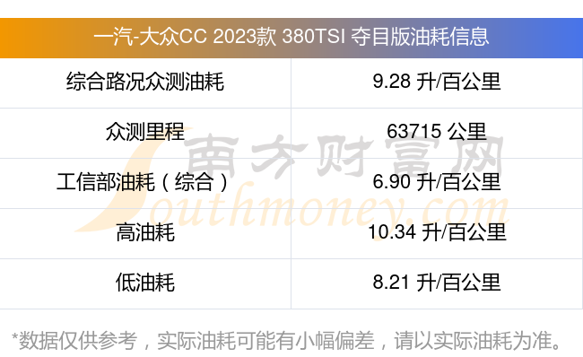 根據(jù)多位車主實(shí)測(cè)得出數(shù)據(jù),該車型低油耗為8.21升/百公里,高油耗為10.34升/百公里,綜合路況眾測(cè)油耗為9.28升/百公里,工信部綜合油耗為6.90升/百公里。
