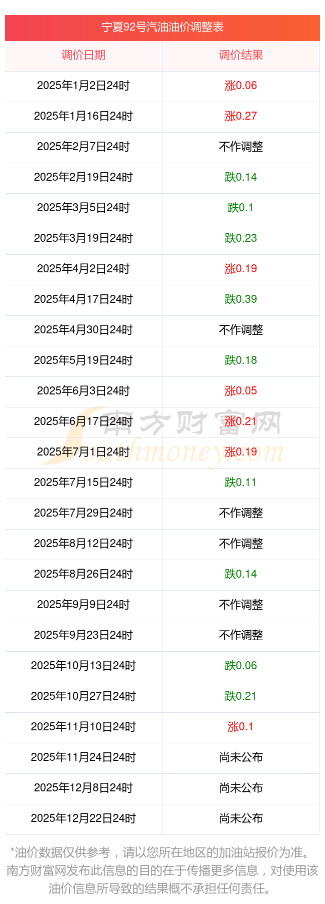 2025年寧夏最新汽油價格調(diào)整一覽表