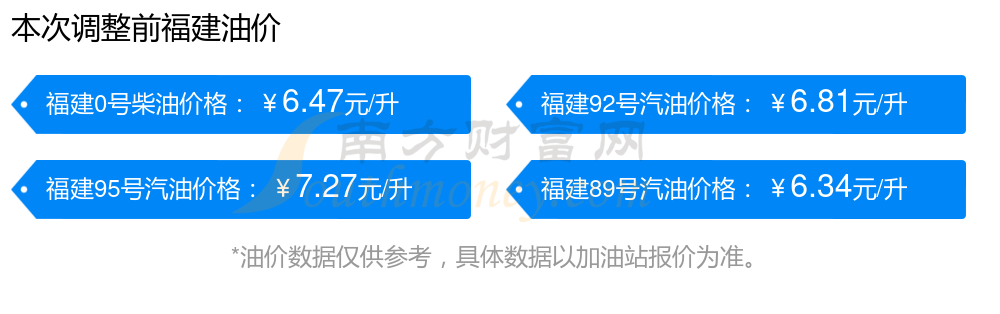 11月14日福建汽油、柴油的價格為11月11日調(diào)整后的價格。每升最新價格為:92號汽油6.91元,上漲了0.1元;95號汽油7.38元,上漲了0.11元;89號汽油6.43元,上漲了0.09;0號柴油6.58元,上漲了0.11元。
