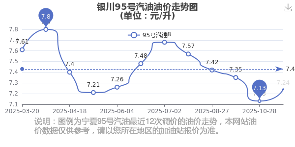 銀川2025年汽油價(jià)格調(diào)整走勢圖