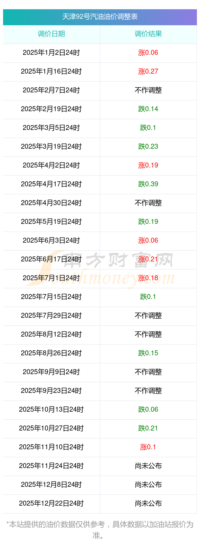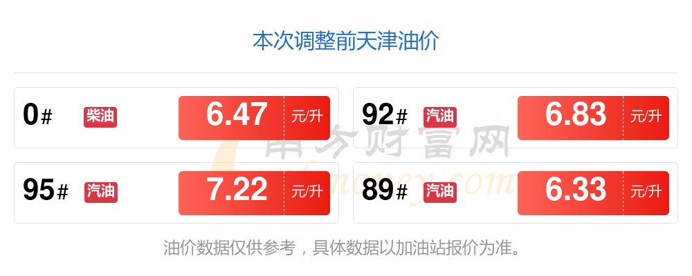 油價(jià)數(shù)據(jù)僅供參考,請(qǐng)以您所在地區(qū)的各加油站報(bào)價(jià)為準(zhǔn)。