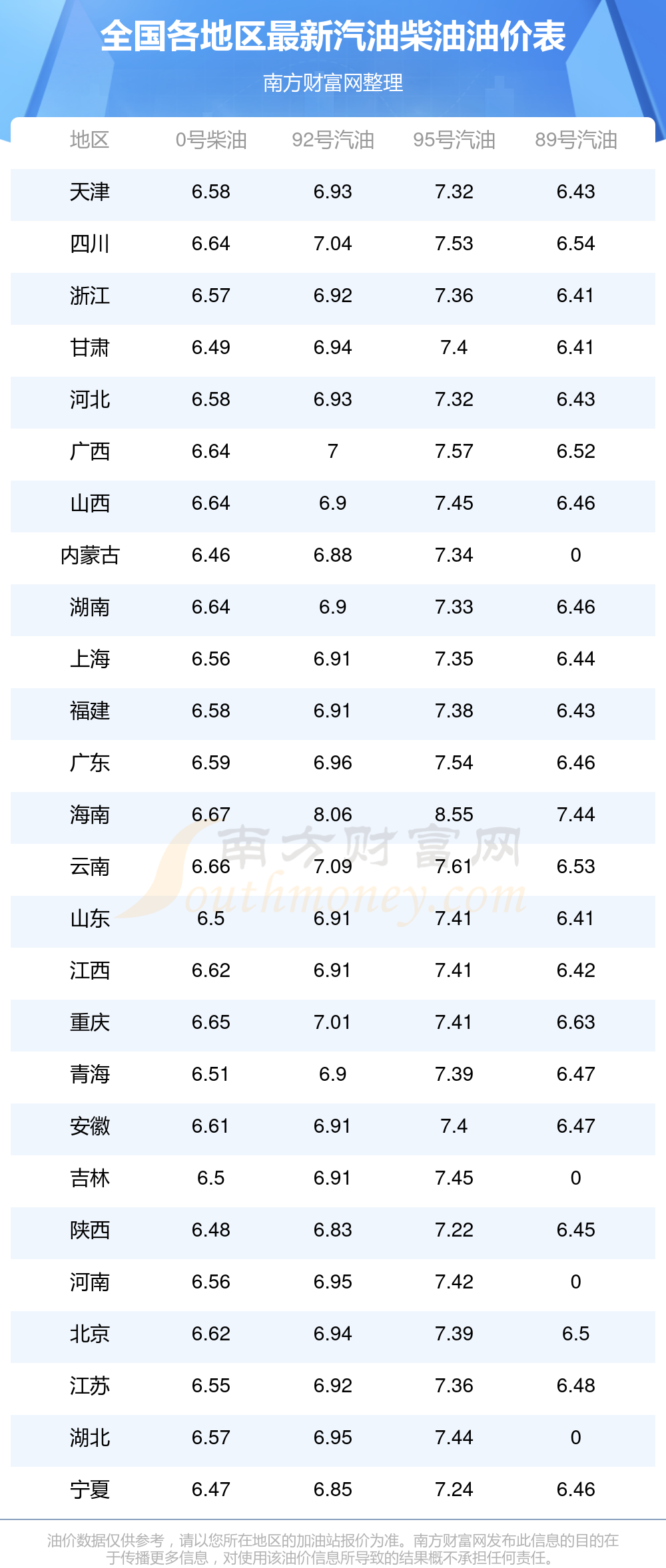 油價(jià)數(shù)據(jù)僅供參考,請(qǐng)以您所在地區(qū)的各加油站報(bào)價(jià)為準(zhǔn)。