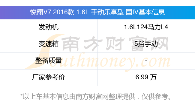 在動力上,悅翔V7 2016款 1.6L 手動樂享型 國IV配備的是一臺1.6L124馬力L4自然吸氣發(fā)動機,匹配的是5擋手動擋變速箱,燃料形式為汽油,廠家參考價6.99萬元。