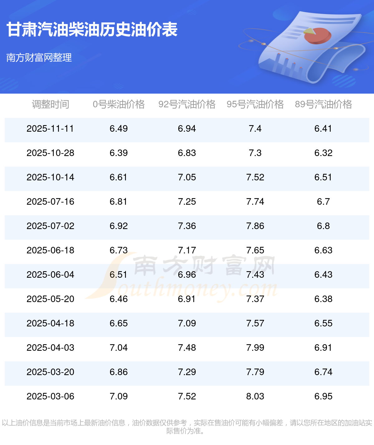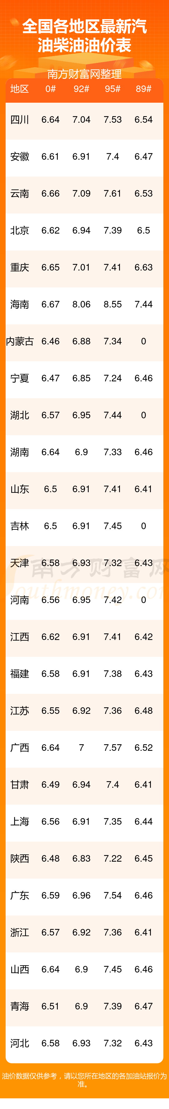 (11月15日)全國油價一覽表