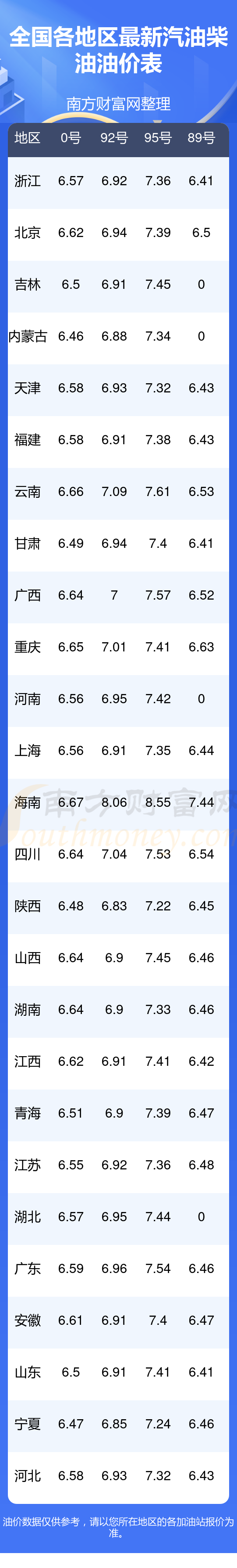 2025年11月15日全國(guó)各地汽油價(jià)格一覽表