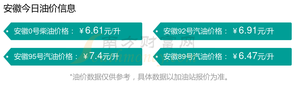 阜陽汽油、柴油11月15日每升的價格具體是(11月11日調(diào)整后的價格):92號汽油6.91元;95號汽油7.4元;89號汽油6.47元;0號柴油6.61元。