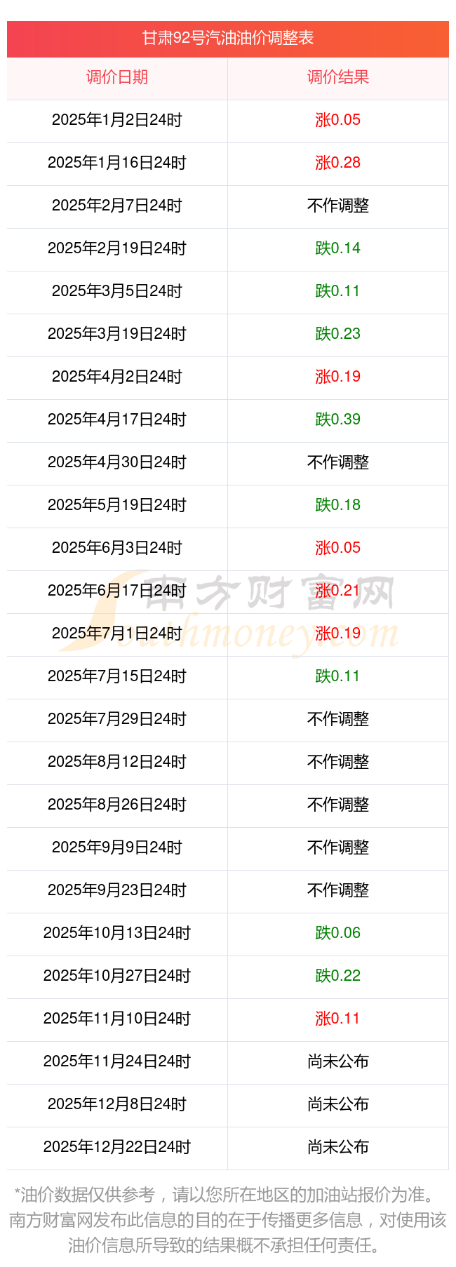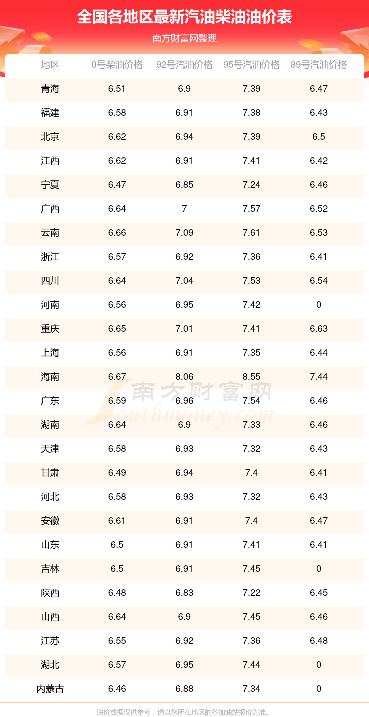 2025年全國各地區(qū)最新油價表