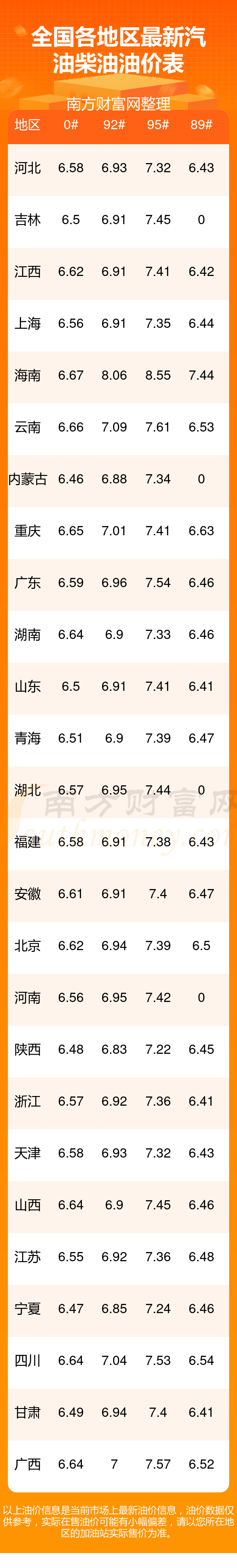 2025年11月15日全國油價(jià)調(diào)整及最新汽油價(jià)格表