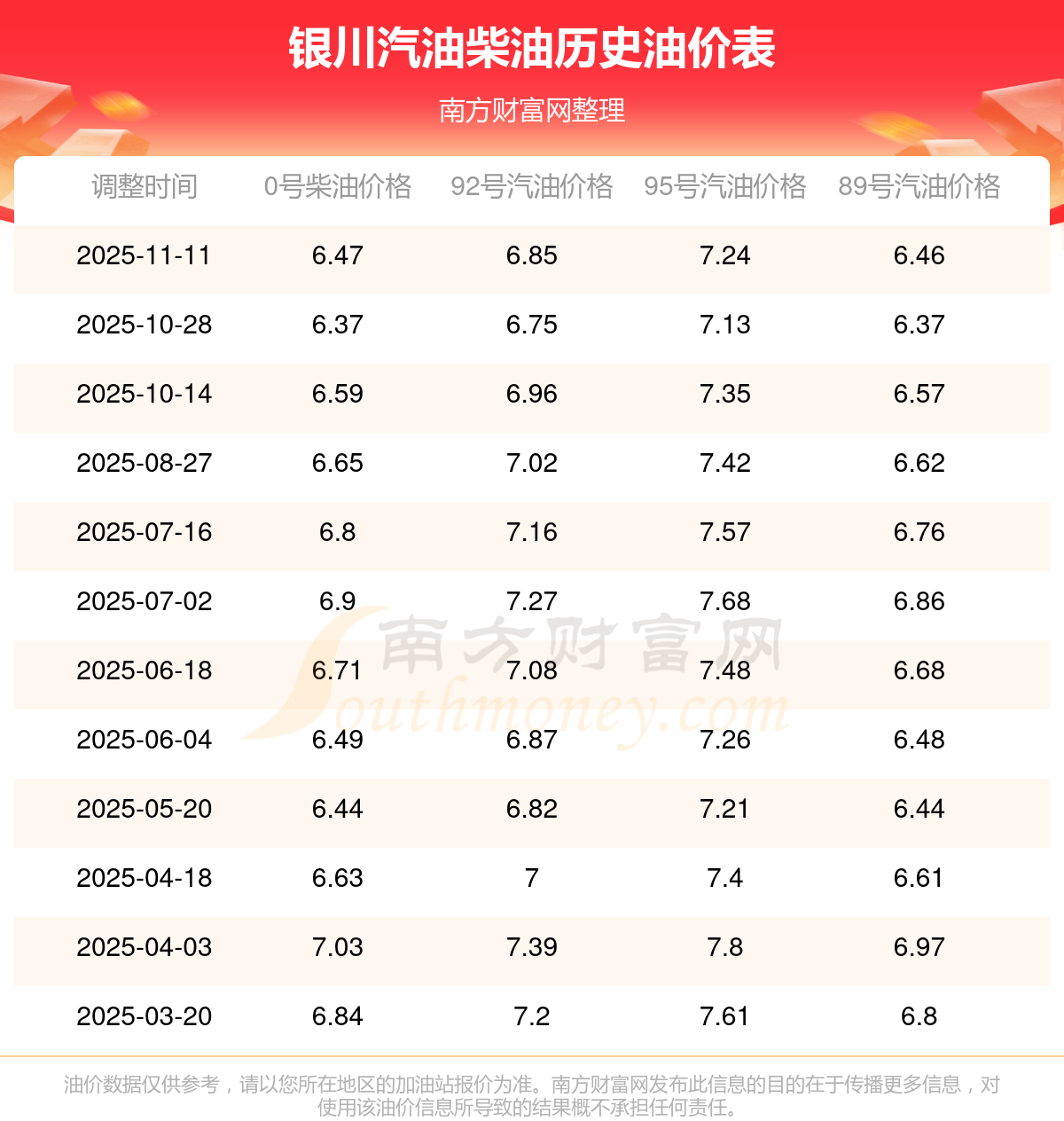 油價(jià)調(diào)整最新消息:11月15日銀川汽油、柴油的價(jià)格是11月11日調(diào)整后的價(jià)格,每升價(jià)格為:92號(hào)汽油為6.85元,增了0.1元,增幅達(dá)1.48%;95號(hào)汽油為7.24元,增了0.11元,增幅達(dá)1.54%;89號(hào)汽油為6.46元,增了0.09元,增幅達(dá)1.41%;0號(hào)柴油為6.47元,增了0.1元,增幅達(dá)1.57%。銀川下一輪油價(jià)調(diào)整時(shí)間11月24日24時(shí),距離現(xiàn)在還有9.73天。