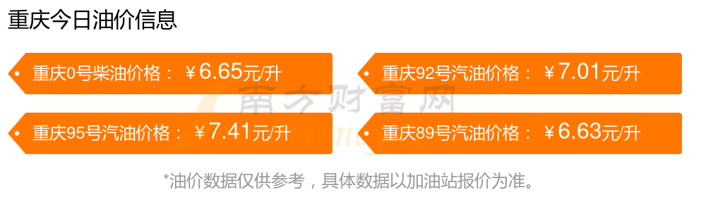 重慶汽油、柴油11月15日每升的價格為(油價調(diào)整時間是11月11日):92號汽油7.01元;95號汽油7.41元;89號汽油6.63元;0號柴油6.65元。下一輪油價調(diào)整時間11月24日24時,距離現(xiàn)在還有9.69天。