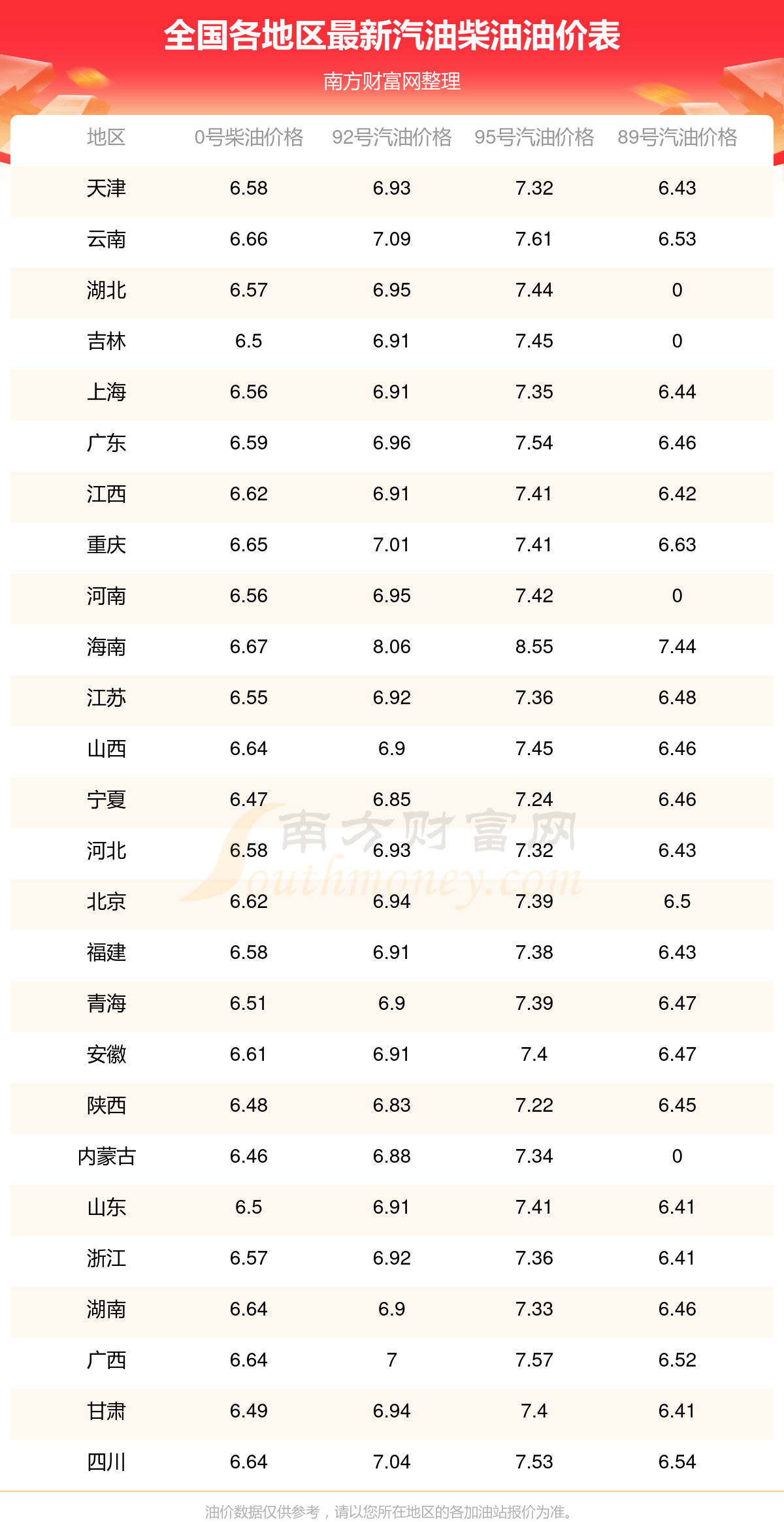 2025年11月15日全國各地油價調(diào)整及最新汽油價格表