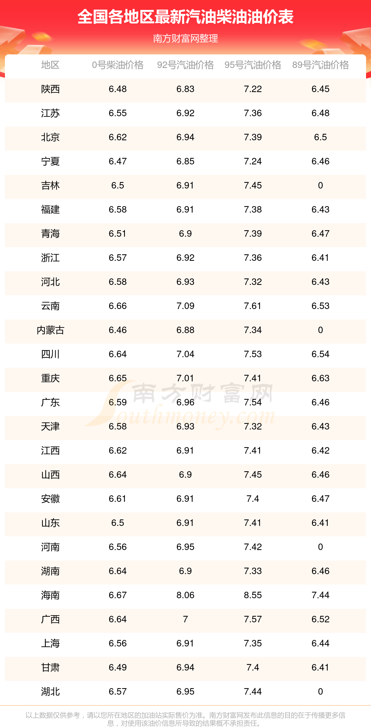 油價(jià)數(shù)據(jù)僅供參考,請(qǐng)以您所在地區(qū)的各加油站報(bào)價(jià)為準(zhǔn)。