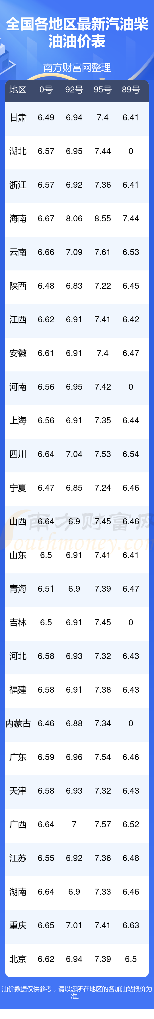 油價(jià)數(shù)據(jù)僅供參考,請(qǐng)以您所在地區(qū)的各加油站報(bào)價(jià)為準(zhǔn)。