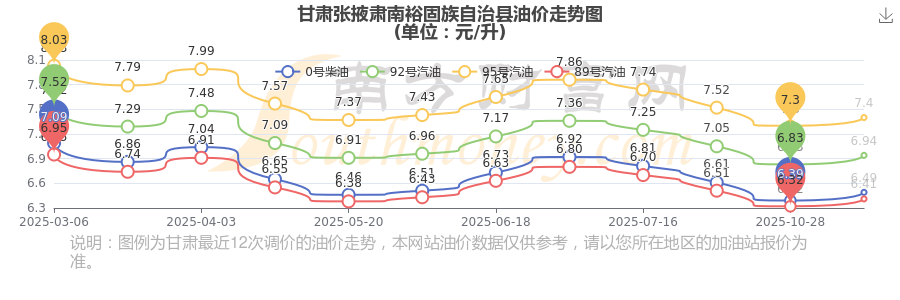 甘肅張掖肅南裕固族自治縣歷史油價走勢圖