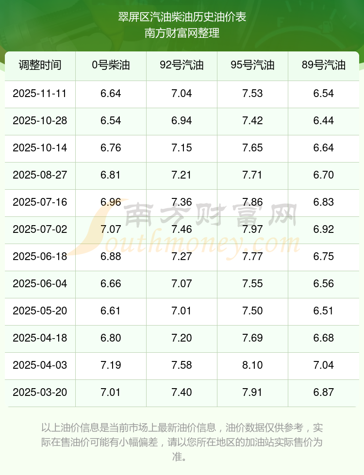 11月15日翠屏區(qū)今日汽油價格如下:92號汽油7.04元;95號汽油7.53元;89號汽油6.54元;0號柴油6.64元(該價格為11月11日調(diào)整后的價格)。