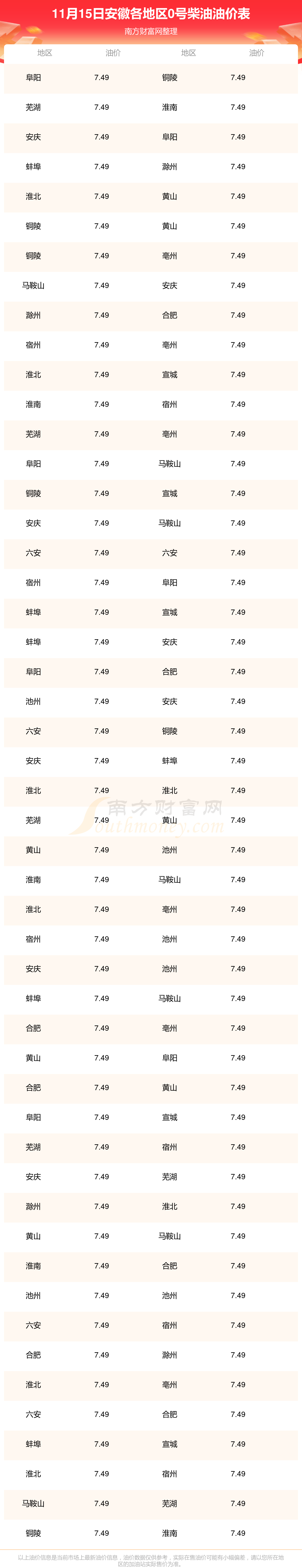 安徽各地區(qū)最新0號(hào)柴油油價(jià)表