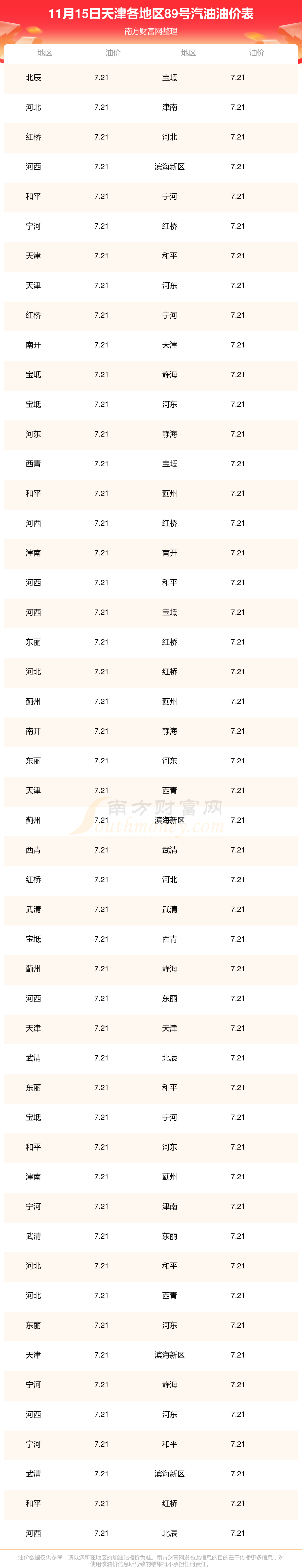 2025年11月15日天津89號汽油最新價(jià)格一覽表