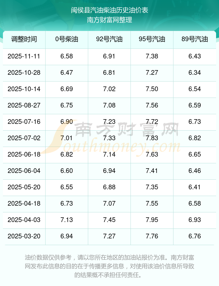 11月15日閩侯縣汽油每升的價(jià)格,具體如下:92號(hào)汽油6.91元;95號(hào)汽油7.38元;89號(hào)汽油6.43元;0號(hào)柴油6.58元(該價(jià)格為11月11日調(diào)整后的價(jià)格)。
