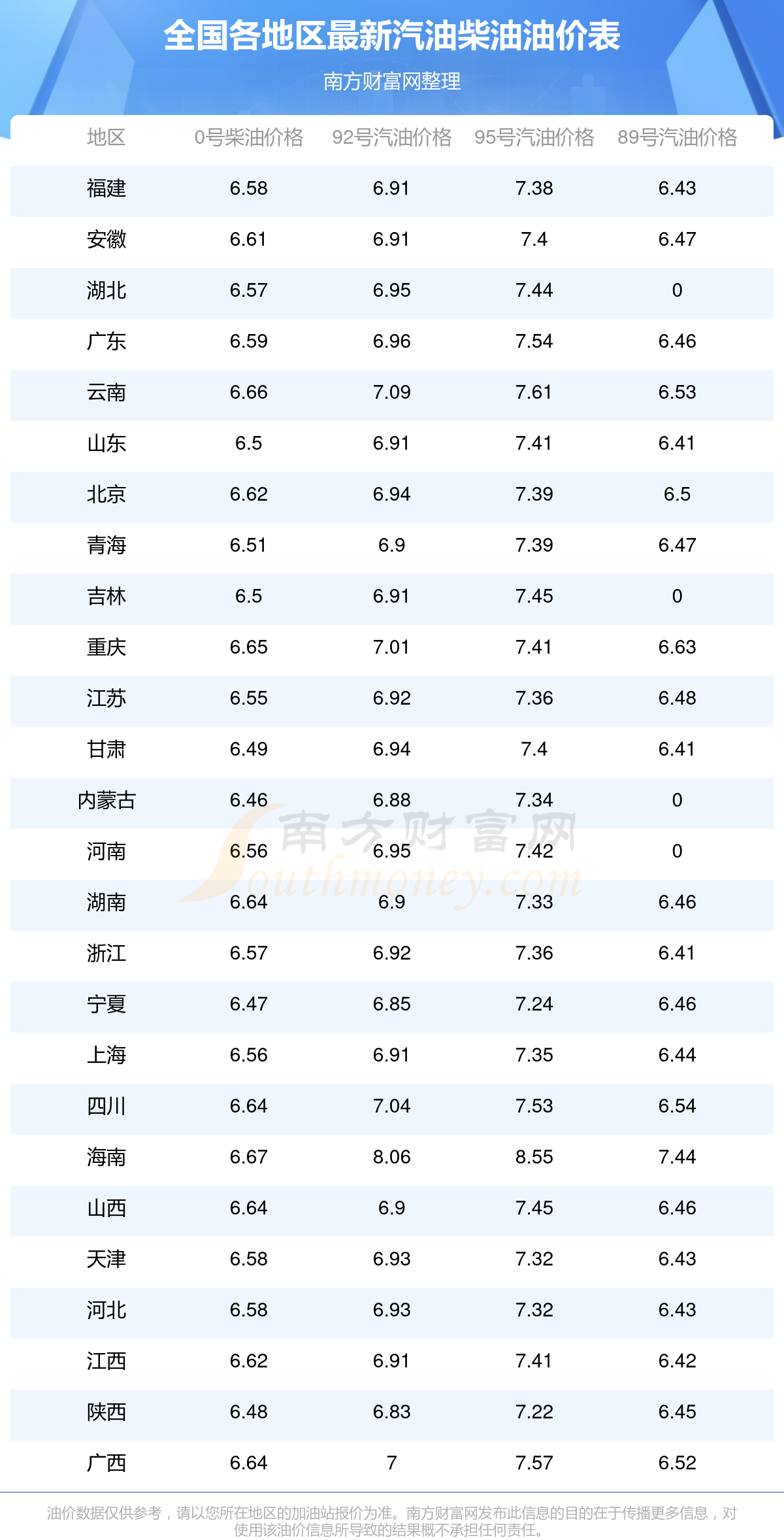 全國0號柴油最新平均價格為:7元每升,其中,最高為海南,價格為6.67元/升,最低為內(nèi)蒙古,價格為6.46元/升。