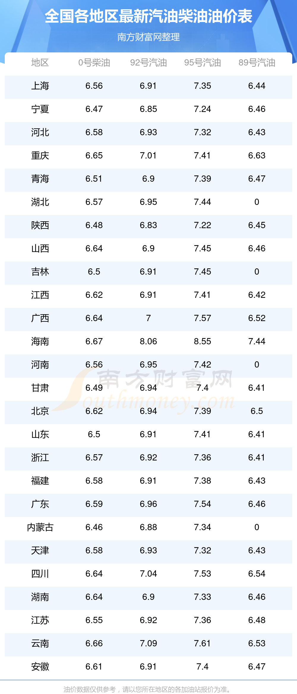 油價(jià)數(shù)據(jù)僅供參考,請(qǐng)以您所在地區(qū)的各加油站報(bào)價(jià)為準(zhǔn)。