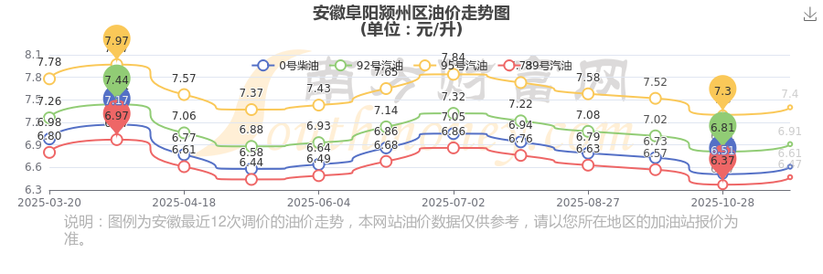 安徽阜陽潁州區(qū)歷史油價走勢圖