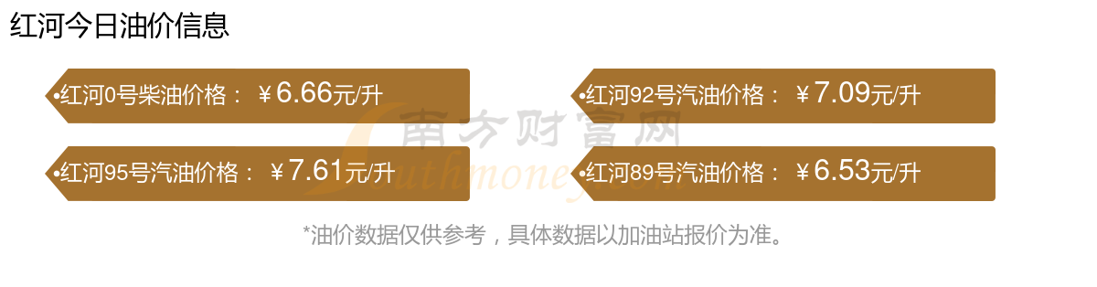 紅河95號汽油11月15日最新價格為7.61元/升,調(diào)整時間為11月11日,相對上次調(diào)整時間10月28日的油價7.5元每升,升了0.11元,升1.467%。下一輪油價調(diào)整時間11月24日24時,距離現(xiàn)在還有9.58天。