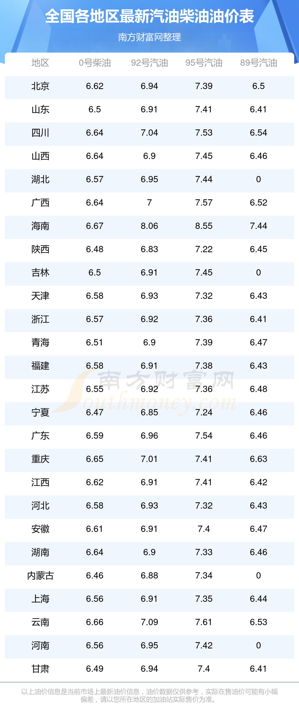 以上油價信息是當(dāng)前市場上最新油價信息,油價數(shù)據(jù)僅供參考,實際在售油價可能有小幅偏差,請以您所在地區(qū)的加油站實際售價為準(zhǔn)。
