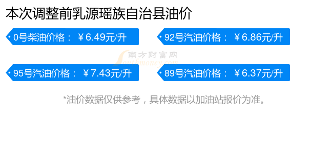 油價(jià)數(shù)據(jù)僅供參考,請(qǐng)以您所在地區(qū)的加油站報(bào)價(jià)為準(zhǔn)。南方財(cái)富網(wǎng)發(fā)布此信息的目的在于傳播更多信息,對(duì)使用該油價(jià)信息所導(dǎo)致的結(jié)果概不承擔(dān)任何責(zé)任。