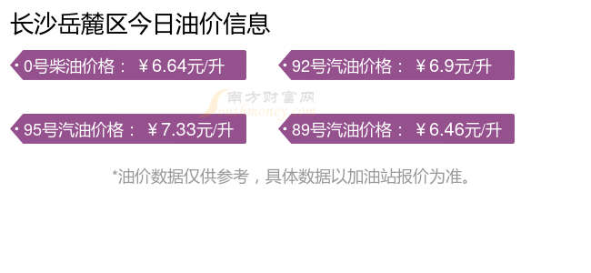 油價調整最新消息:下一輪油價調整時間11月24日24時。長沙岳麓區(qū)汽油、柴油11月15日每升的價格為(油價調整時間是11月11日):92號汽油6.9元;95號汽油7.33元;89號汽油6.46元;0號柴油6.64元。