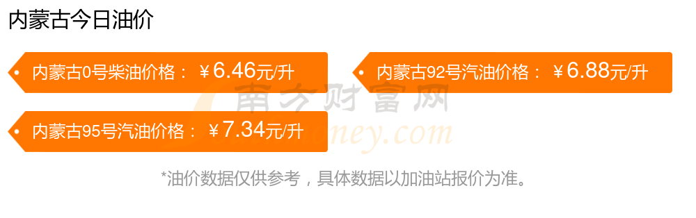 以上內(nèi)蒙古油價信息是當前市場上最新油價信息,包括內(nèi)蒙古: 舟山、金華、杭州、臺州、湖州、寧波、溫州等13個地區(qū)各加油站統(tǒng)一指導價,油價數(shù)據(jù)僅供參考,對內(nèi)蒙古各加油站由于其經(jīng)營特點和其它因素,實際在售油價可能有小幅偏差,請以您所在地區(qū)的加油站實際售價為準。