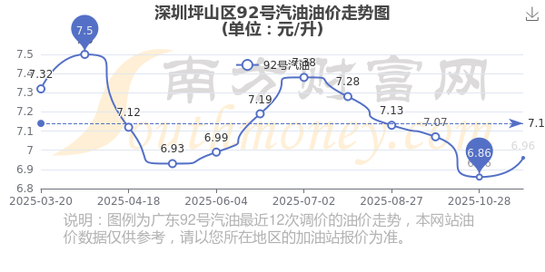深圳坪山區(qū)92號(hào)汽油歷史油價(jià)走勢(shì)圖