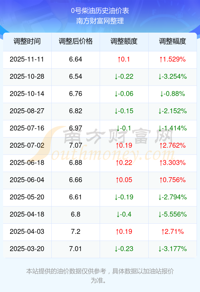 本站提供的油價(jià)數(shù)據(jù)僅供參考,具體數(shù)據(jù)以加油站報(bào)價(jià)為準(zhǔn)。