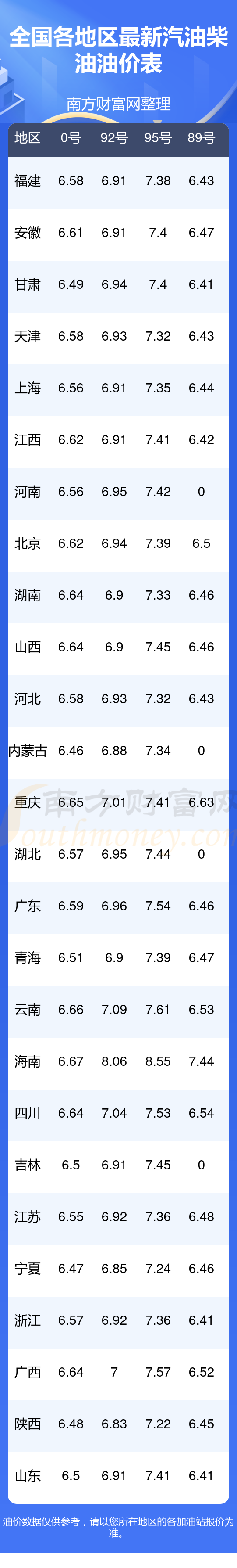 本站提供的油價(jià)數(shù)據(jù)僅供參考,具體數(shù)據(jù)以加油站報(bào)價(jià)為準(zhǔn)。