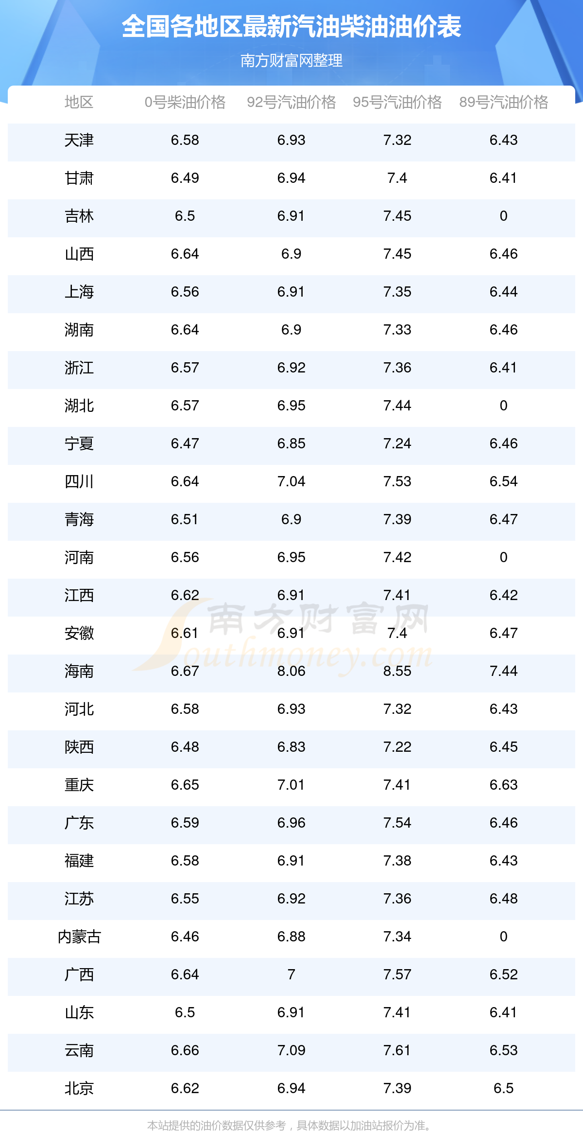 油價(jià)數(shù)據(jù)僅供參考,請(qǐng)以您所在地區(qū)的各加油站報(bào)價(jià)為準(zhǔn)。