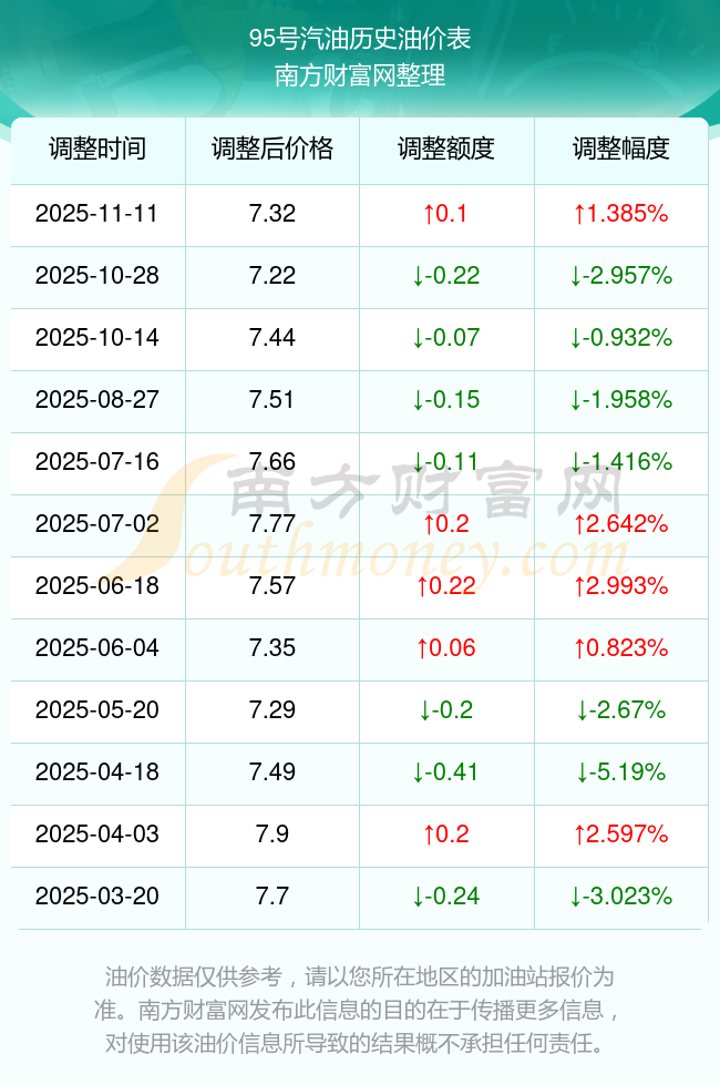 油價調(diào)整最新消息:下一輪油價調(diào)整時間11月24日24時。11月15日,河北汽油、柴油的價格為11月11日調(diào)整后的價格。具體為:92號汽油6.93元,漲了0.1元;95號汽油7.32元,漲了0.1元;89號汽油6.43元,漲了0.1;0號柴油6.58元,漲了0.11元。