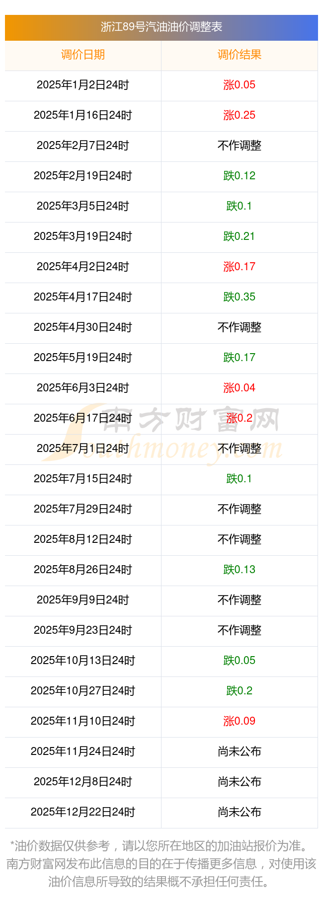 2025年浙江最新汽油價(jià)格調(diào)整一覽表