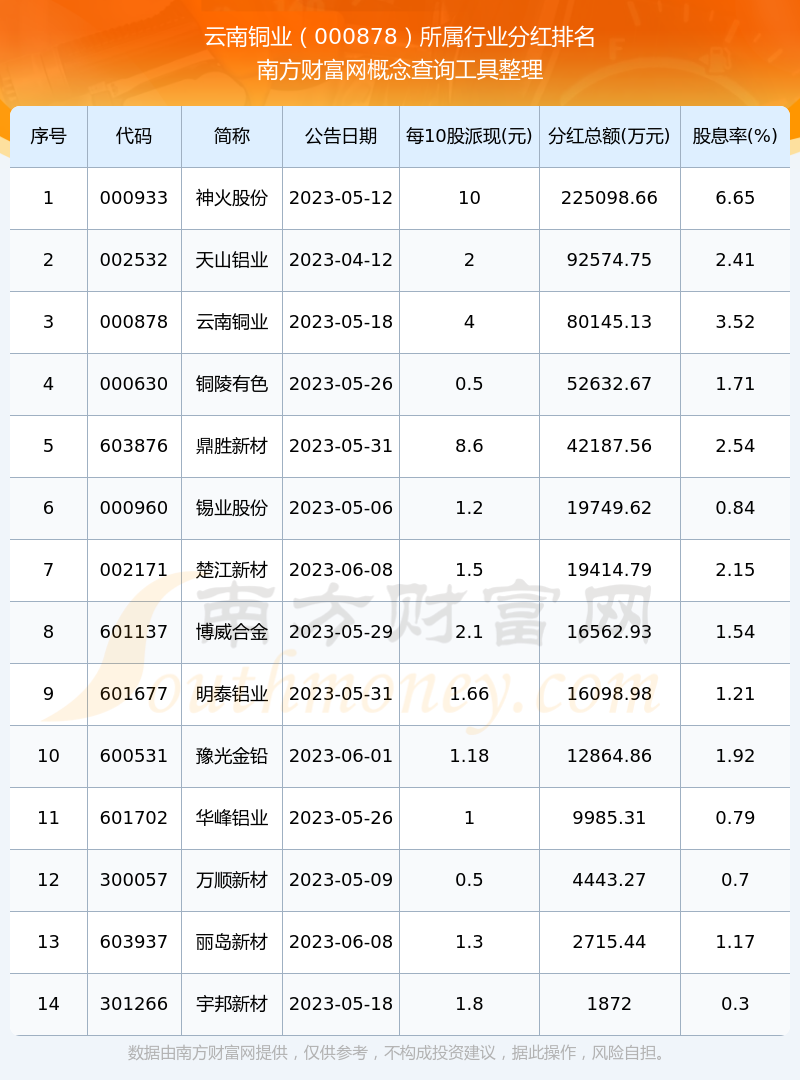 二、云南銅業(yè)000878行業(yè)分紅排名