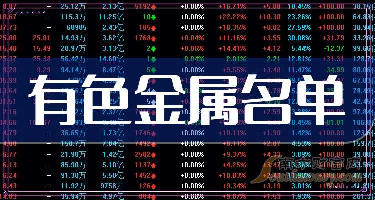 有色金屬概念股有寧德時(shí)代、中國(guó)神華、紫金礦業(yè)、洛陽(yáng)鉬業(yè)、陜西煤業(yè)、中煤能源、中國(guó)鋁業(yè)、億緯鋰能、北方稀土、山東黃金等297家上市公司。有色金屬龍頭股是哪幾只?南方財(cái)富網(wǎng)概念查詢工具為您整理有色金屬龍頭股的相關(guān)信息。