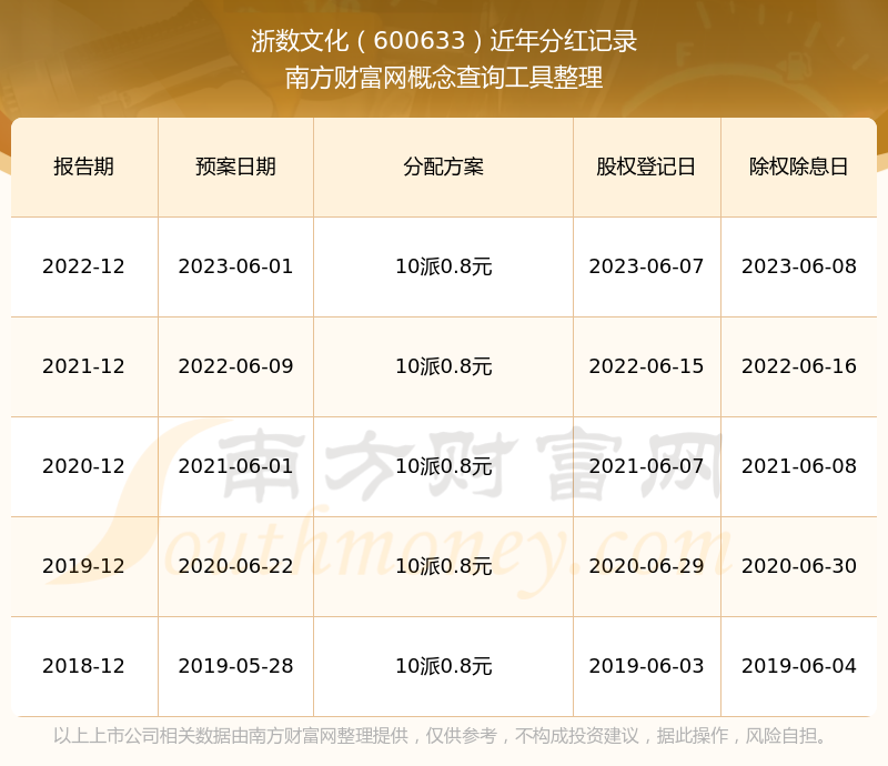 浙數(shù)文化最新一次公布的分紅方案:10派0.8元。