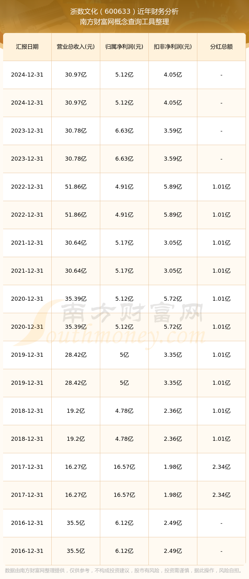 近年浙數(shù)文化分紅派息情況如下表所示: