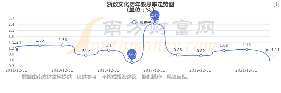 浙數(shù)文化歷年股息率走勢(shì)如下圖: