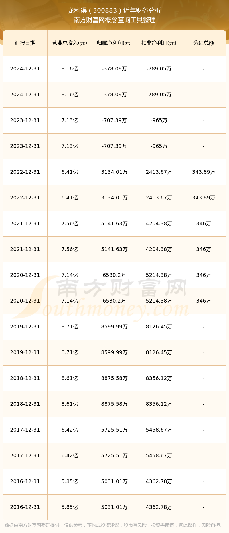2024年報(bào)顯示,龍利得實(shí)現(xiàn)營(yíng)收8.16億,同比增長(zhǎng)14.46%;凈利潤(rùn)-378.09萬(wàn),同比增長(zhǎng)46.55%;毛利率13.91%。