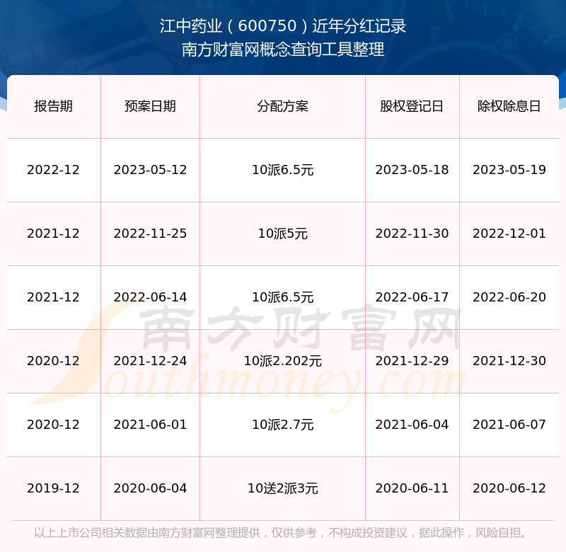 江中藥業(yè)最新一次公布的分紅方案:10派6.5元。