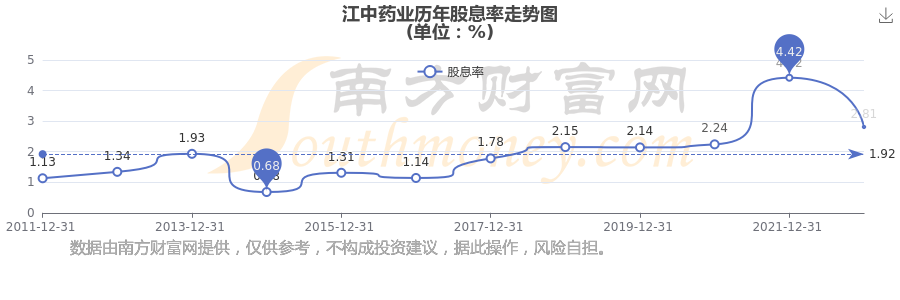 近年江中藥業(yè)年度股息率走勢如下圖: