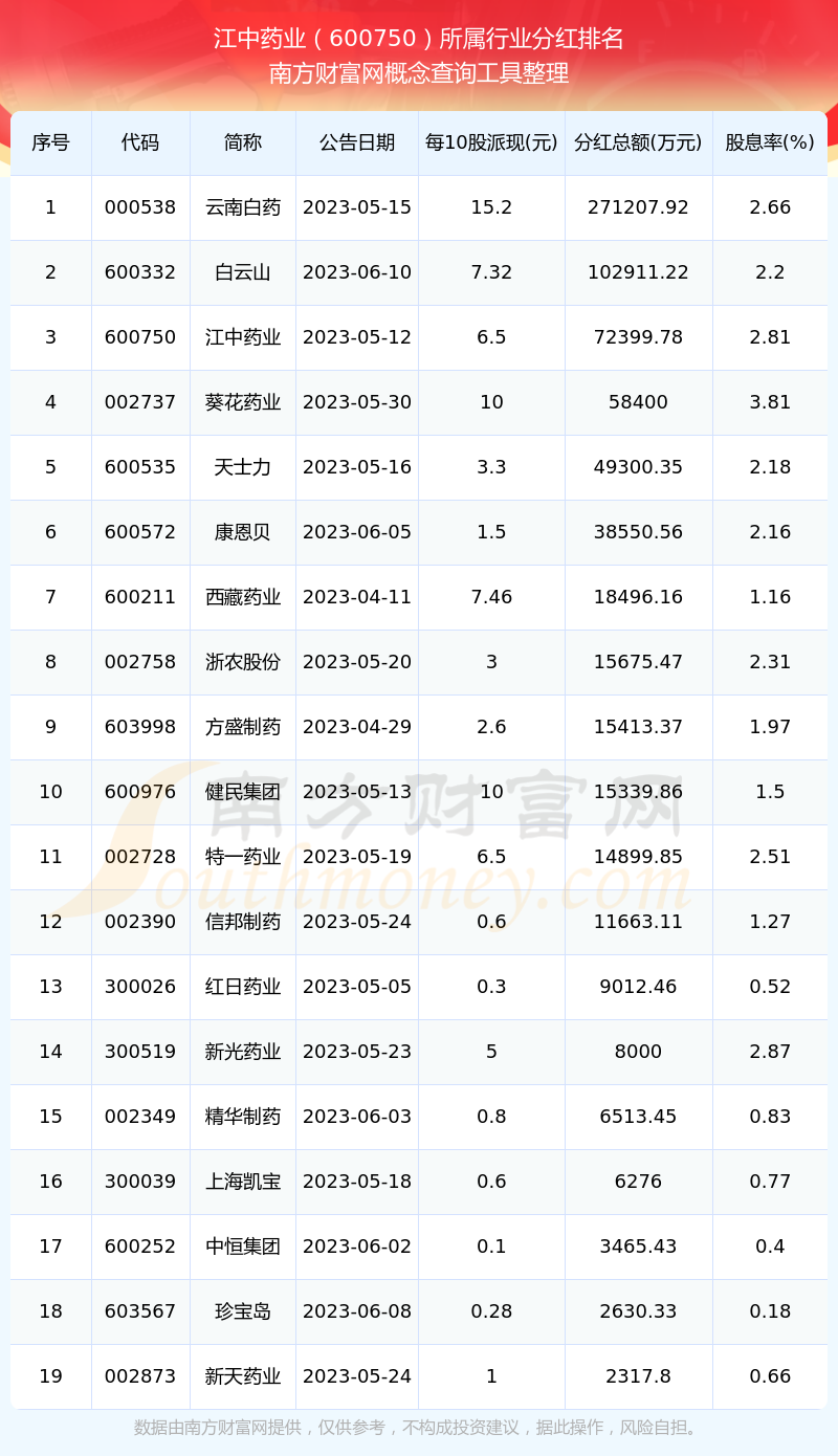 二、江中藥業(yè)600750行業(yè)分紅排名