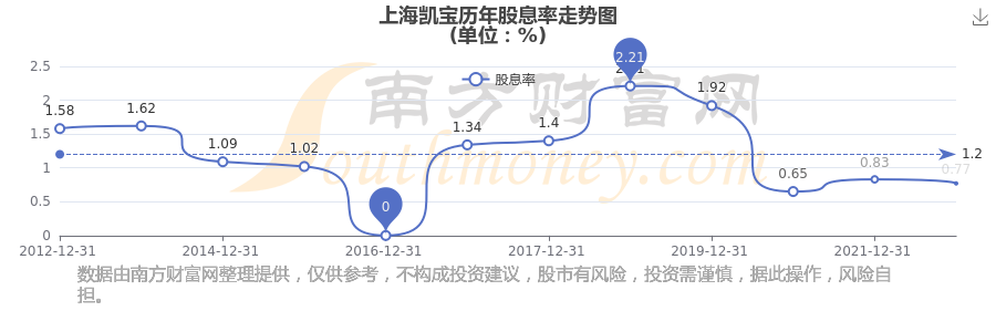上海凱寶歷年股息率走勢(shì)如下圖: