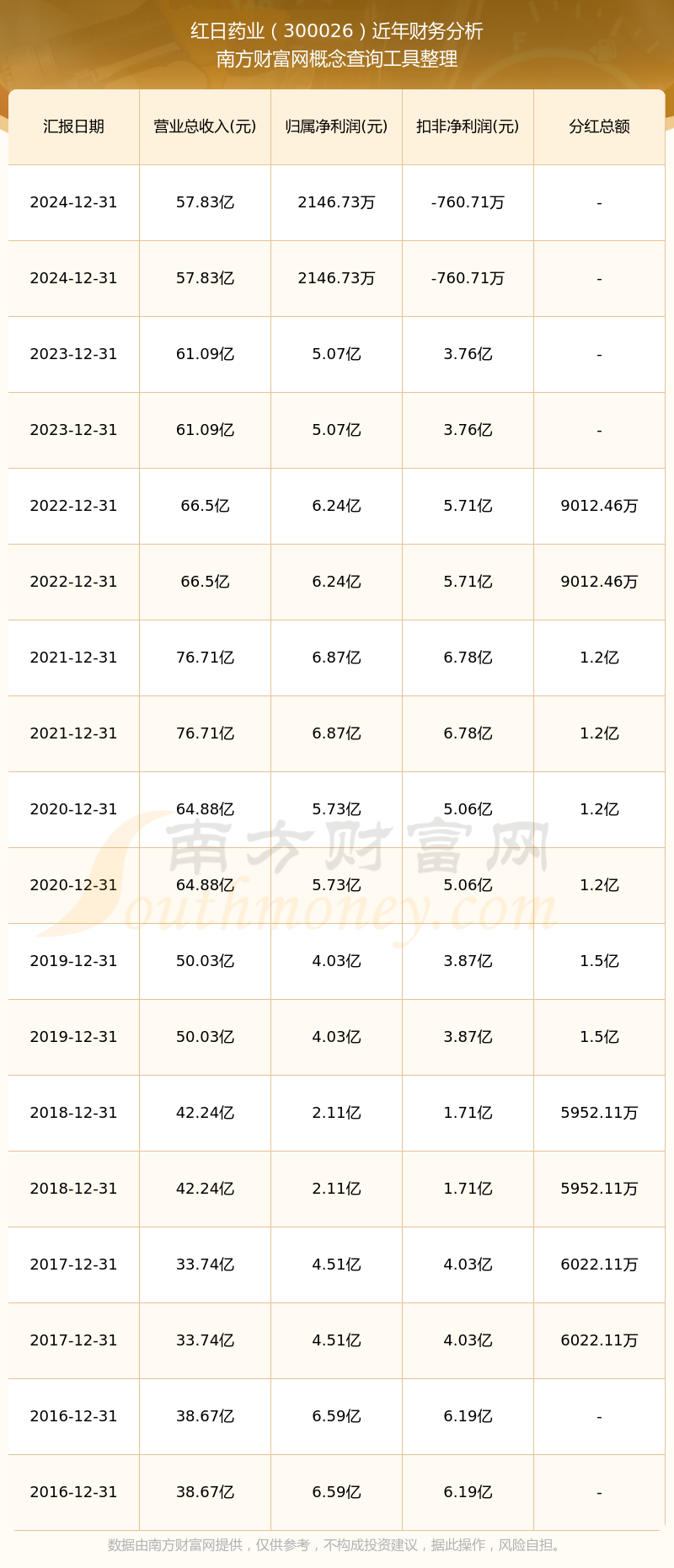 紅日藥業(yè)歷年分紅派息情況如下表所示: