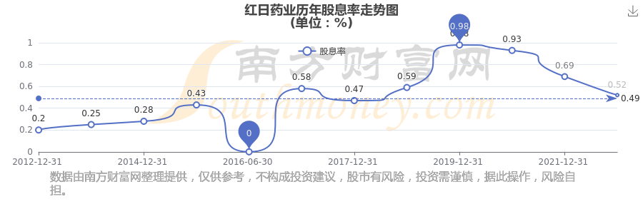 紅日藥業(yè)歷年股息率走勢如下圖: