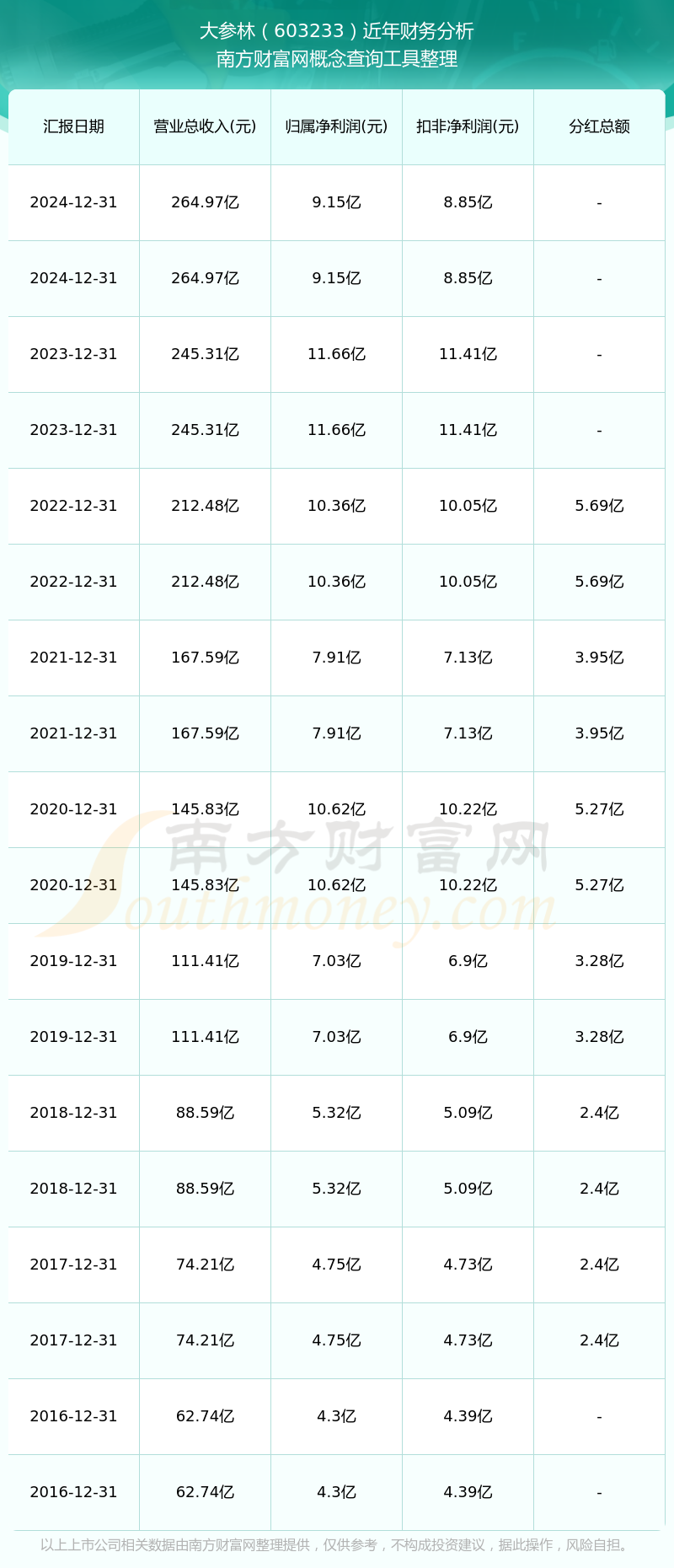 大參林2024年總營(yíng)收264.97億,同比增長(zhǎng)8.01%;凈利潤(rùn)9.15億,同比增長(zhǎng)-21.58%;銷售毛利率34.33%。