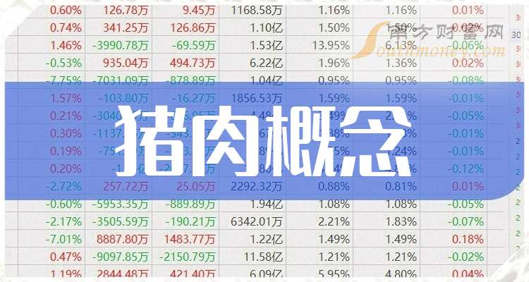 截至10月8日,A股涉及豬肉概念的上市公司具體分布情況為:主板的有18家、中小板的有18家、創(chuàng)業(yè)板的有5家。概念查詢工具為您整理了歸屬于豬肉概念,并且在A股上市的公司。